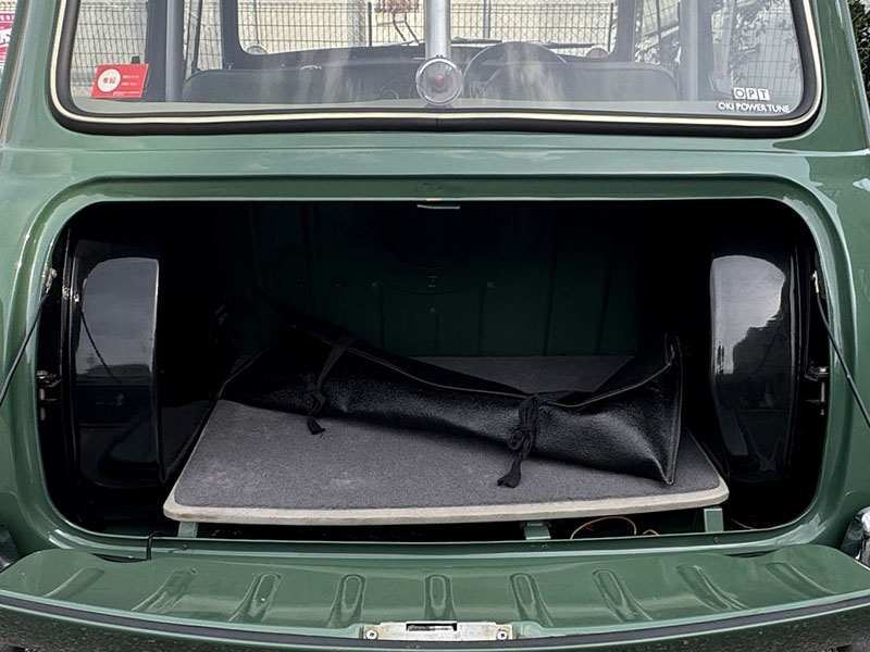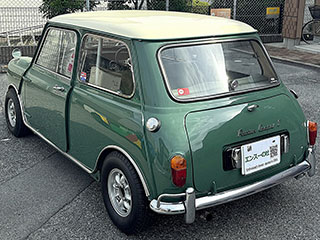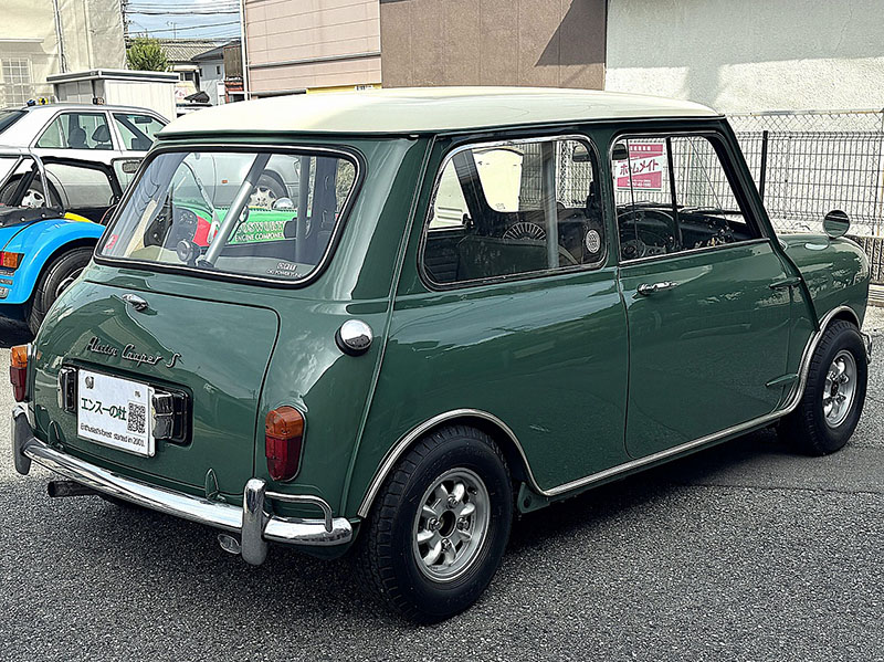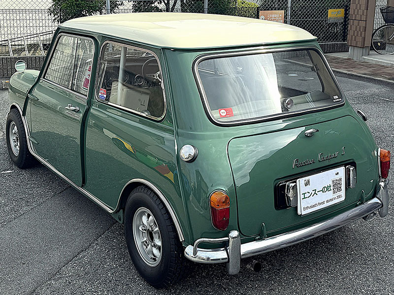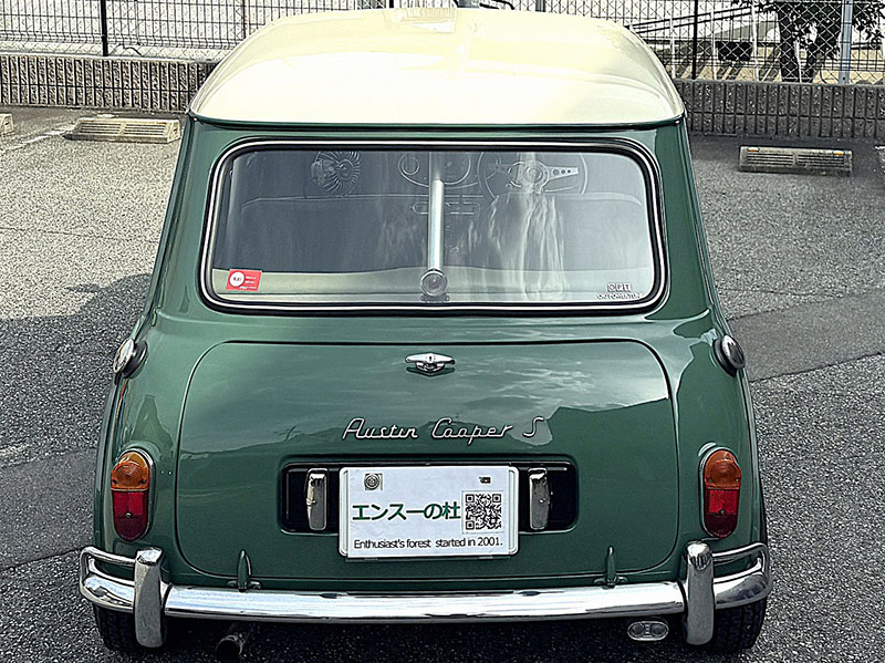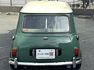 リアビュー、この曲面がMINIらしさを感じさせます。Austin Cooper S のロゴ、左右に給油口有ります。ダミーではありません。左右タンク仕様です。 |