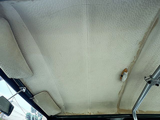 天井ライニングは垂れは見られませんがシミが発生しています。チラリと見えるのは3点式ロールバーレプリカです。 |