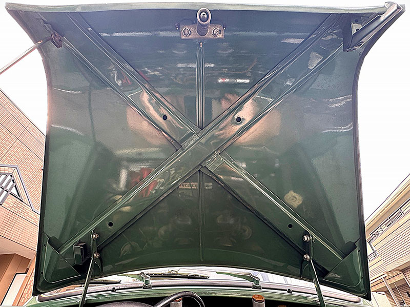 ボンネット裏面、エンジンルームがそのまま映るような大変きれいな状態です。インシュレータはありません。 |