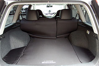 後席をフラットに倒すと純正ラゲッジルームカバーがキッチリとフィットして実用性が増します |