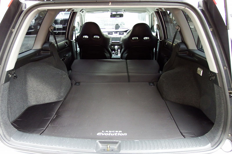 また、荷室はフラットにもなるため、とても使い勝手が良く、走行性と実用性を兼ね備えたランエボです。