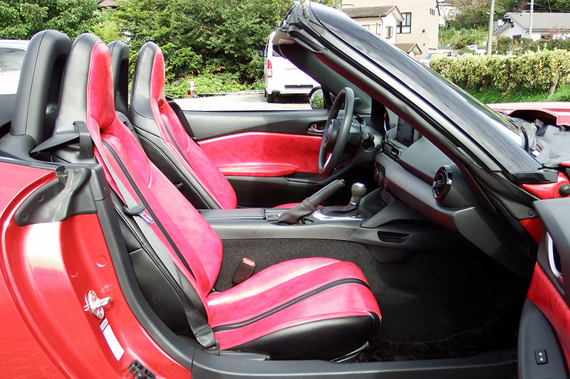 ボディカラーは専用色のパッションブラッドレッド、ベース車はND型マツダロードスターの北米仕様です。