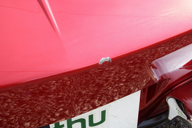 リア上部中央付近に3センチ程度(画像47参照)、ぶつけた訳ではなく塗装が欠けてしまっており、オーナーさんが所有する他のロックスターも同様の症状が出ているので、造作的な問題化と思われます。