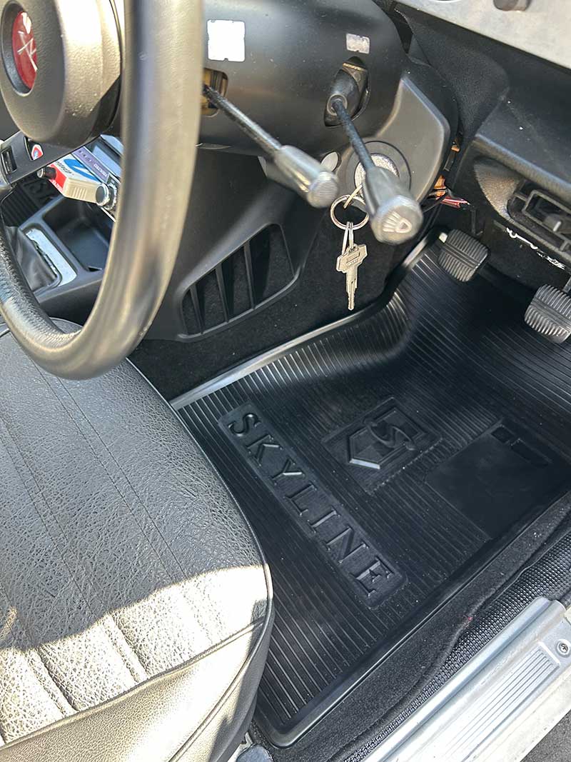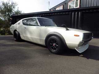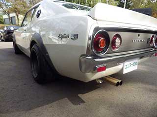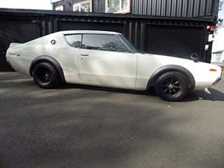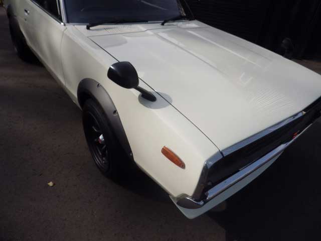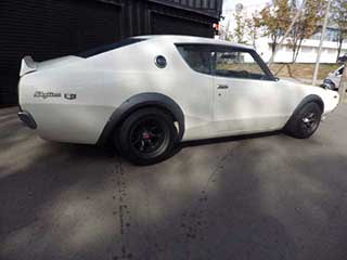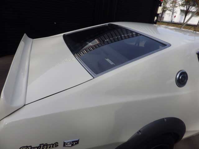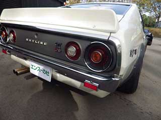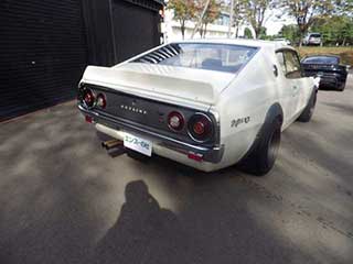 今回ご紹介する車両はスカイラインKGC110改です。ケンメリの愛称で慕われていました。 ケンメリとはハコスカの後を受けて1972年9月に登場した4代目スカイライン ケンとメリーと名付けられた2人のカップルがスカイラインに乗って全国各地を旅するというシリーズものが制作され、 今回の車両は令和6年にフルレストアしている車両です。 レストアの再に各部カスタムした車両です。 スポーツインジェクションで一発でエンジンが目覚めます。 外装はGT-R仕様です 前面社外白ガラス(窓全面透明紫外線99%カットフィルム貼っています) 内装
