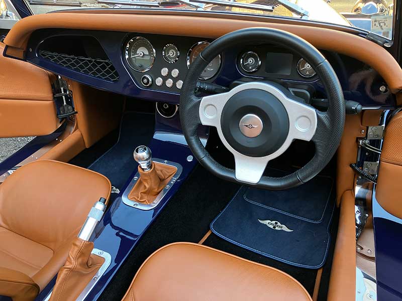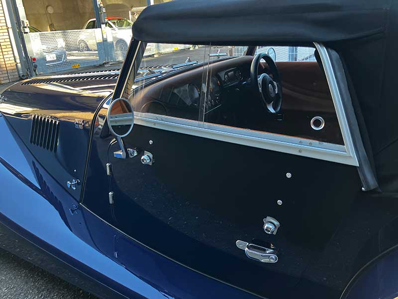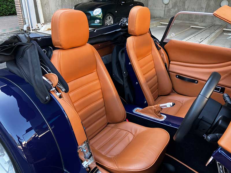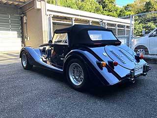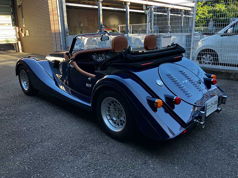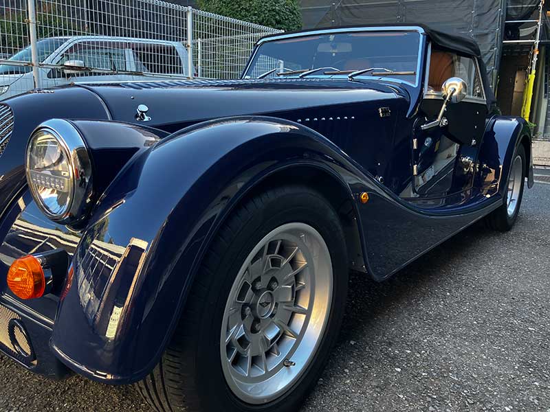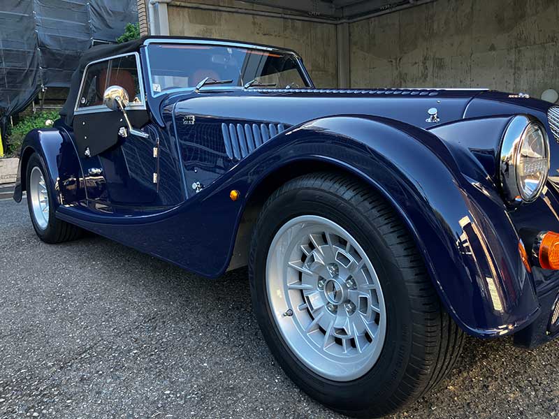 ボディーカラーは、古くから採用されていたモーガン好きに好評な「インディゴブルー」で、最新型からカタログ落ちしましたが、新車注文時に「特別オーダー」したそうです。