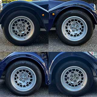 最新型のモーガン「PlusFour」は、先代のプラス4(こちらの”フォー”は数字表記)まで長らく受け継がれてきたスチールラダーフレーム、スライディングピラー・フロントサスペンション、リジットアクスル・リアサスペンションが、新型”PlusFour”では、アルミシャシー、前後ダブルウィッシュボーンへ刷新されました。