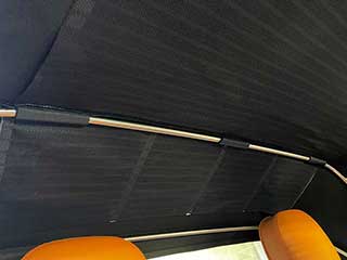 また、こちらの個体はオプションでエアコンを装備していて、幌の内側に遮熱シートを後付けしたのと相まって、夏でも快適だそうです。
