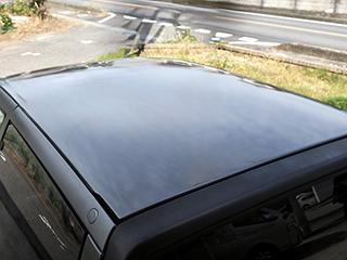 ブラックアウトされたリアゲート、JAXのステッカーが残る |