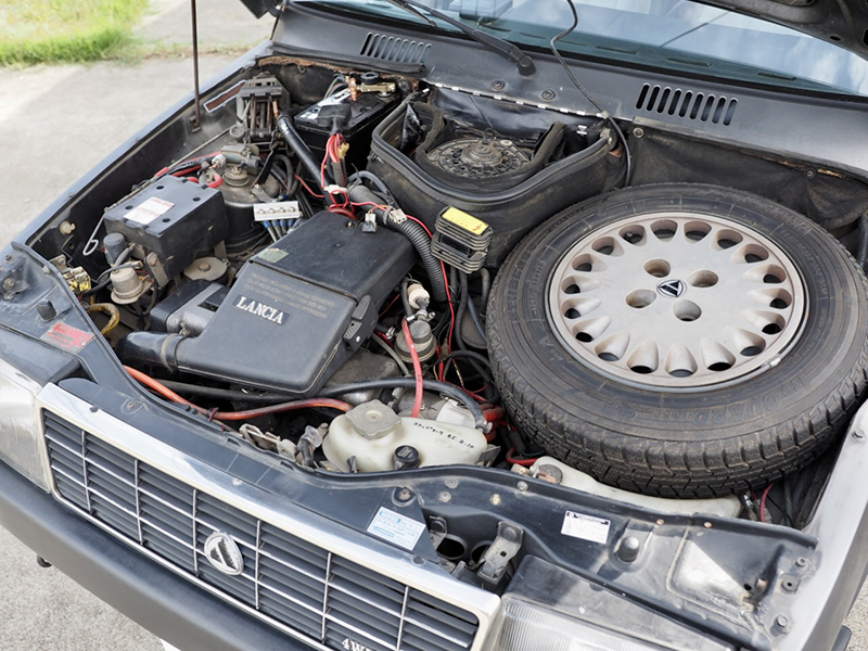 アシンメトリーに横置きされるランチア製1000ccユニット |