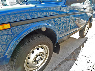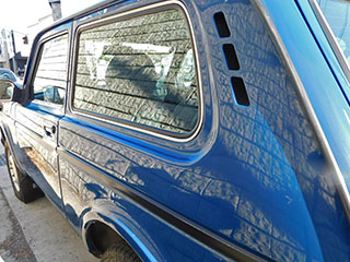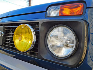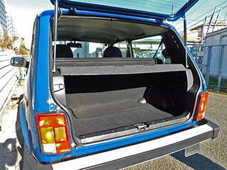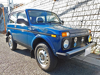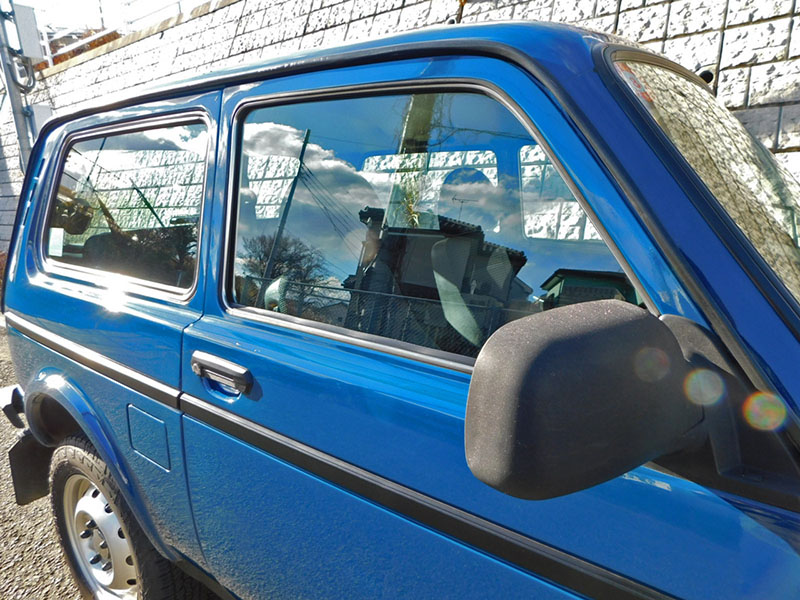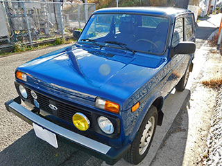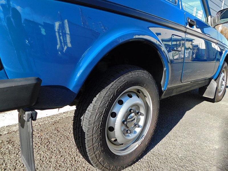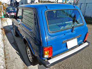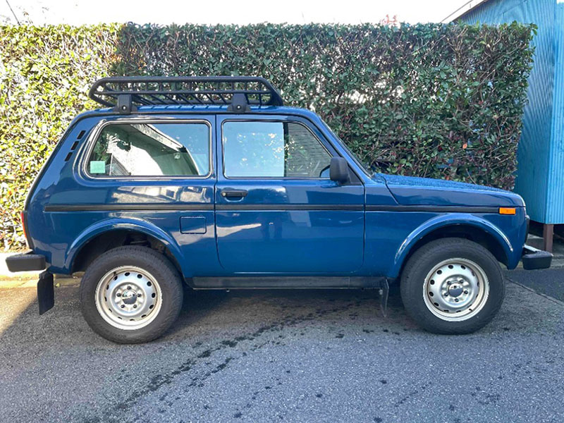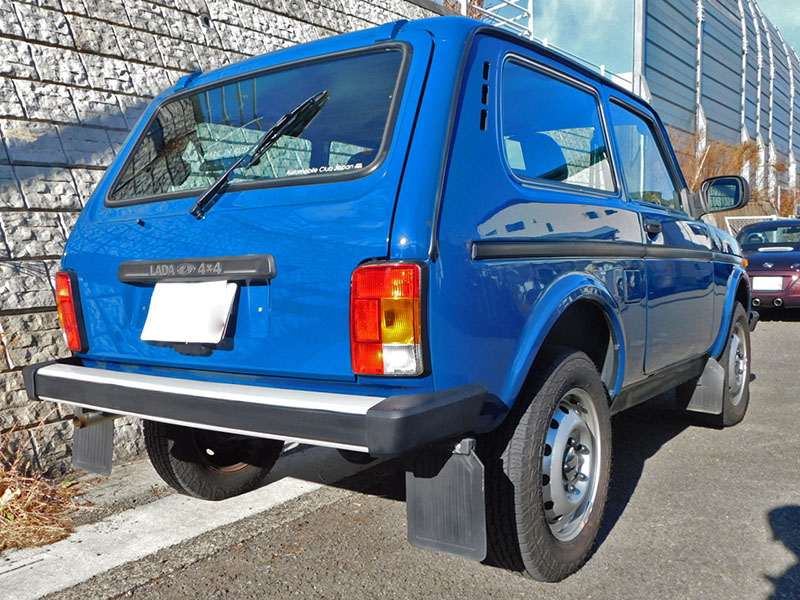 ボディカラーはソリッドのブルー。ラーダ・ニーヴァにしては珍しいカラーですが、レトロ感溢れるスタイルにはマッチした色合いです。