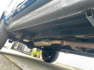 右サイドのアンダーパネル、マフラーの表面に軽い錆がある程度 |