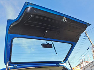 レトロ感を感じさせるソリッドのブルーのカラーリングとボクシーなスタイル、丸目2灯にコンパクトな4WDボディ、必要最低限のシンプルな車内等・・・取材していて久々にビビっと来ました。