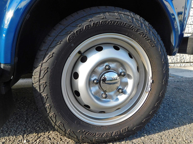 ホイールは純正のスチール、タイヤはダンロップのグラントレックAT5、2023年19週製造の175/80R16で、8分山程度あります。
