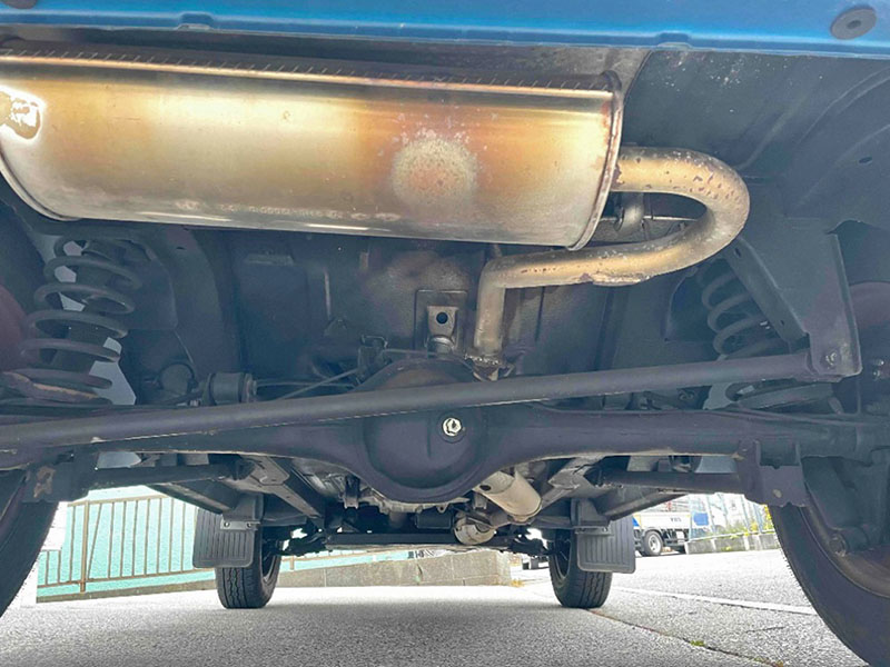 リアデフ周辺にも錆は無く、マフラーの状態も良好 |