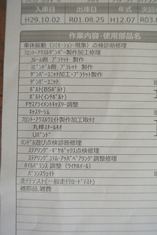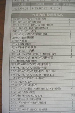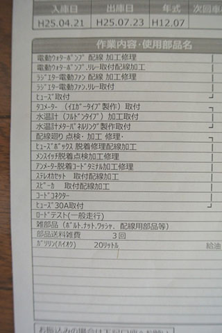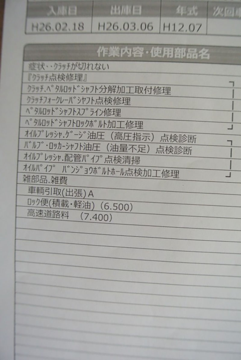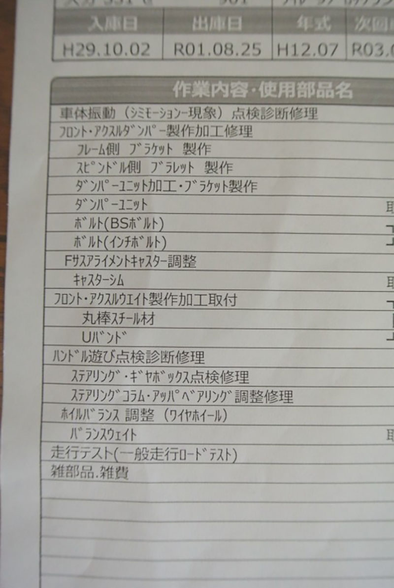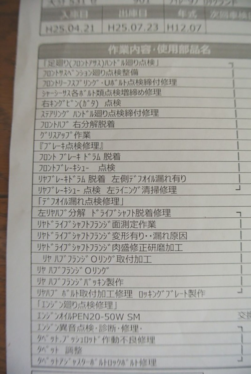 現オーナーが購入後の整備記録は、写真を添付しますので、ご参考にされてください。