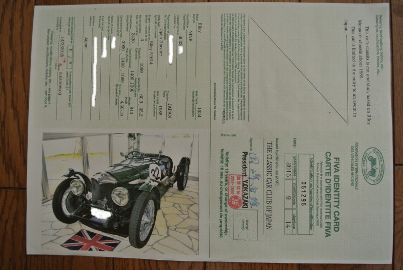 オリジナリティーの高い車に発給される「FIVA IDカード」を2015年9月に取得しています。(写真参照)