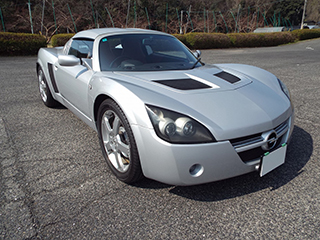 オペルスピードスターはオペルの自動車生産100周年を記念したモデルで、同社の量産車としては初の本格スポーツカーとなる2シーター オープンカーです。ロータスエリーゼの基本設計を元にロータスと共同開発され製造もロータスの工場で行われたそうです。日本での販売は2003年に80台限定で受注生産販売されました。