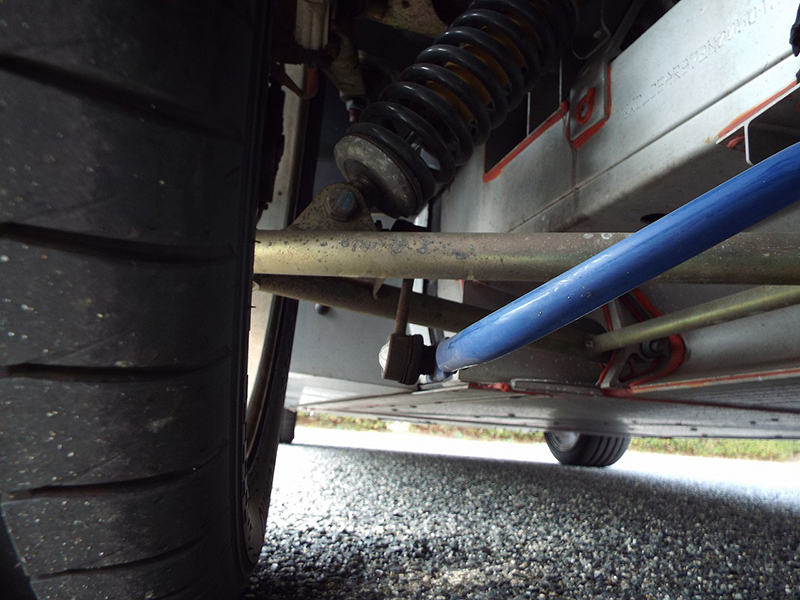 もう一点は走行するにあたって特に問題はありませんが、元々実車のフロントタイヤサイズは175/55-17というサイズのタイヤが付いておりますが、現在このサイズのタイヤが販売されていないようで手に入りません。そのため現在実車のフロントタイヤは外径の近い205/50-17を装着していますが、タイヤ幅の違いにより車庫入れなどでフルロックまでハンドルを切ると内側が少し接触するようです。ホイールの変更などでの対策も可能と思われます。