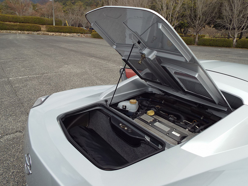 総アルミのフレームやほとんど内張のないコクピット、樹脂製のボディパネルなど非常に軽量なのが特徴で走りに特化したモデルになっております。