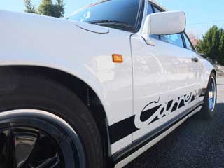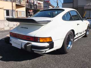 | 84年式のビッグバンパーです。 オーナーさんは専門ショップより平成22年11月に約100000kmで購入されました。ディーラーデリバリーと聞いています。オリジナルを保ちつつ、リフレッシュするにモディファが加えられた仕様です。 まずは外観から見てみましょう。 保管はシャッター付きの完全屋内です。 内装もオリジナルが保たれています。シートは純正のまま、破れや擦れのない大変に良好な状態です。天井や内張りも問題ありません。ステアリングは84年式オリジナルの3本スポークで、センターにはクレストバッジが奢られています。傷みとしてはダッシュにヒビが3本確認できました。交換をご希望であれば、純正品の新品が工賃込みで約25万円だそうです。 エンジンはノーマルスペックですが、1点モディファイが加えられています。エアフロメーターをホットワイヤー式に変更しています。同時にROMと、エアクリーナーをキノコ型に変更しています。これによりシャーシダイナモでの結果は、ノーマルの224psから243ps/6300rpmへとアップしました。レブリミットは6800rpmだそうです。 足回りはノーマルです。トーションバーの調整により車高が下げられています。その際、アライメント調整も行っています。 ホイールは純正アロイですが、サイズをノーマルのF6J R7JからF7J R8Jへとサイズアップしており、ほぼツライチのセッティングです。フロントフェンダーの干渉防止加工はしてあります。 購入当初装備されていなかったクーラーを新設しました。元来効きにくい930系のクーラーですが、そこは対策して設置してあります。コンデンサーはオリジナルのRフードと、さらに左インナーフェンダーにもうひとつ設置してあります。また、コンプレッサーとエバポレーターは国産を用いており、これらの構成で十分な効きが得られたそうです。 オーディオはCDデッキをケンウッド製、スピーカーをナカミチ製に変更してあります。 ETCはこのままお付け致します。 変更したエアフロメーター、エアクリーナーボックス、純正ROM、クロームリングとヘッドライトは保管していますので、お付けできます。 事故・修復歴は現オーナさんではありませんが、過去のものは不明です。 リサイクル券(13330円)と自動車税の月割りはご負担をお願い致します。 オーナーさんはこのクルマが初のポルシェだそうです。当初はそのレスポンスに驚かされましたが、乗るうちにもう少しパンチが欲しいと思うようになってきました。そこで浮上したのがエアフロの交換です。その効果は絶大との事で、データが示すように、あるいはそれ以上のものが体感できたそうです。それでもモディファイはこの程度で、あとはオリジナルを活かした各部のリフレッシュに充てたと言えるものです。実際に横に乗せて頂きましたが、好調さは十分に感じられました。アイドリングもしっかり安定、そこから踏み込めば切れ味鋭い加速が手に入ります。マフラーはノーマルですので、空冷サウンドも心地よいものです。キレイな内外装では、オリジナルの良さもしっかり味わえます。またオーナーさんは、915型のいわゆるポルシェシンクロのフィーリングも非常に気に入っているそうで、現代のポルシェにはないその感覚も楽しみのひとつのようです。リフレッシュを終えたものの、さほど距離は伸びず、この度買い替えのため売却の運びとなりました。サンルーフ、リアワイパーなし、915ミッション、オリジナルに準じたモディファイ、しっかり効くクーラー、これらのキーワードに共感を覚える930型をお探しの方であれば、おそらくはフィットすると思わせるコンディションです。 実車は東京都西東京市にあります。 |