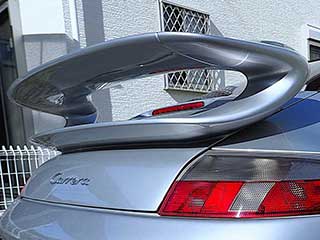 996の滑らかなボディラインにGT3エアロを組み合わせることで、全体がより引き締まって見えます。