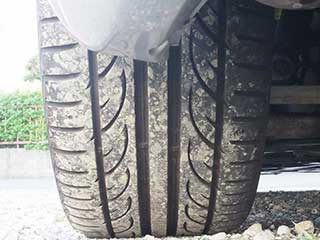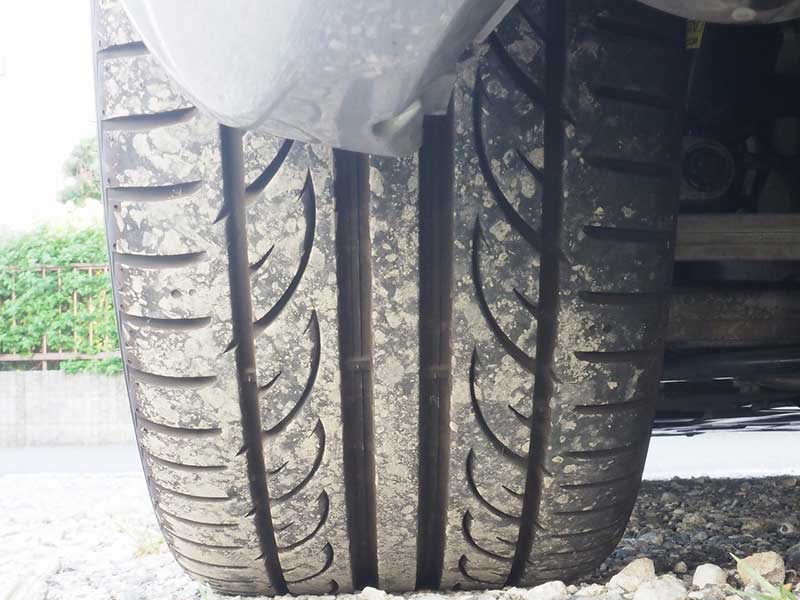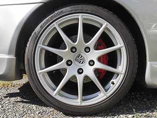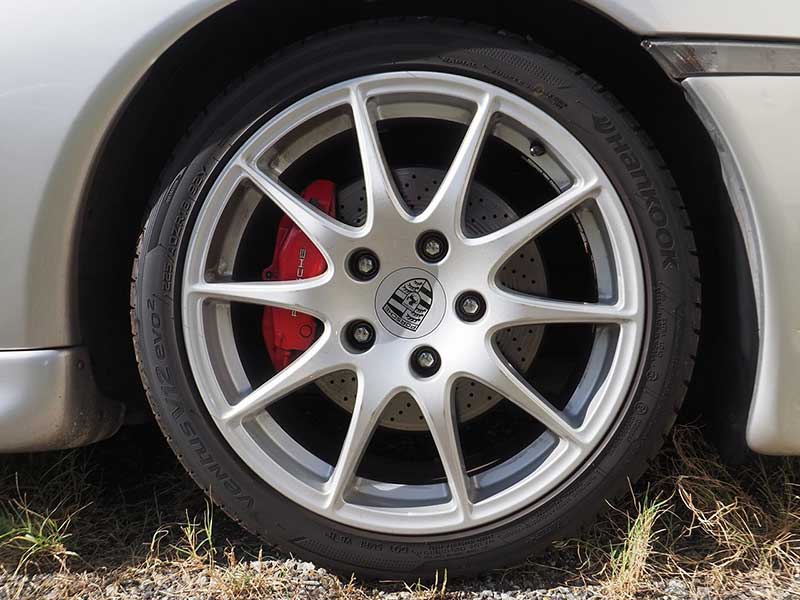 タイヤはハンコックVentus V12 evo2を装着し、トレッド残量も十分残っており、均一な摩耗でアライメントの良好さを示しています。