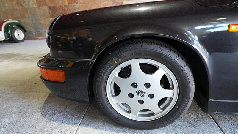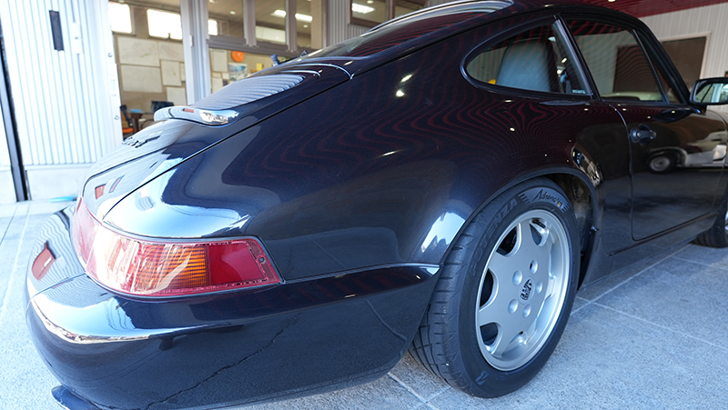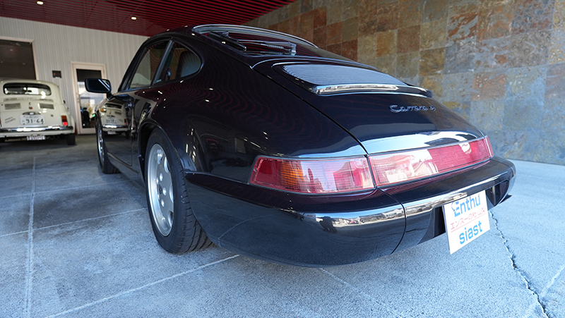 タイプ930Gモデルの後を引き継ぎ、日本ではちょうどバブル絶頂期に発売され、好景気を反映してコスト度外視の964は、今までのトーションバーからコイルに変更され外観こそは930系と変わらずものの8割が新規部品で構成され、新たに刷新さたた個体です。