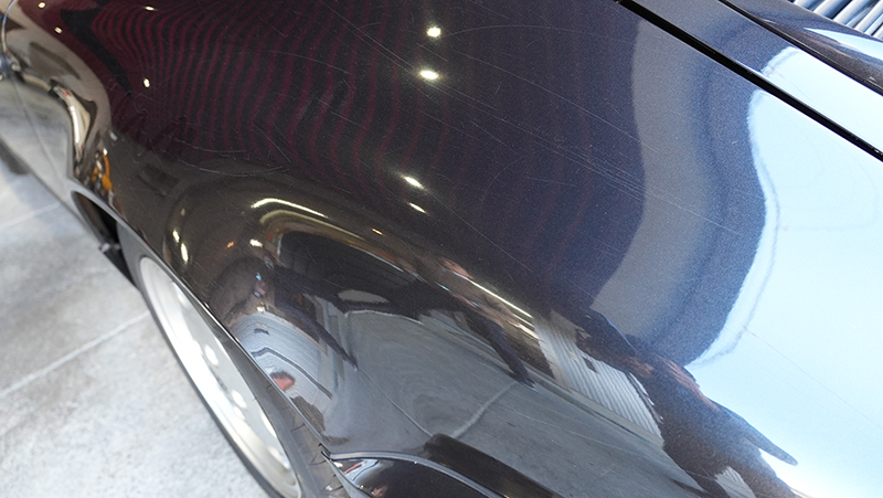 修復歴無しのガンメタリックオリジナル塗装色ですが、 左後フェンダーや右後ろフェンダーに線傷があります。