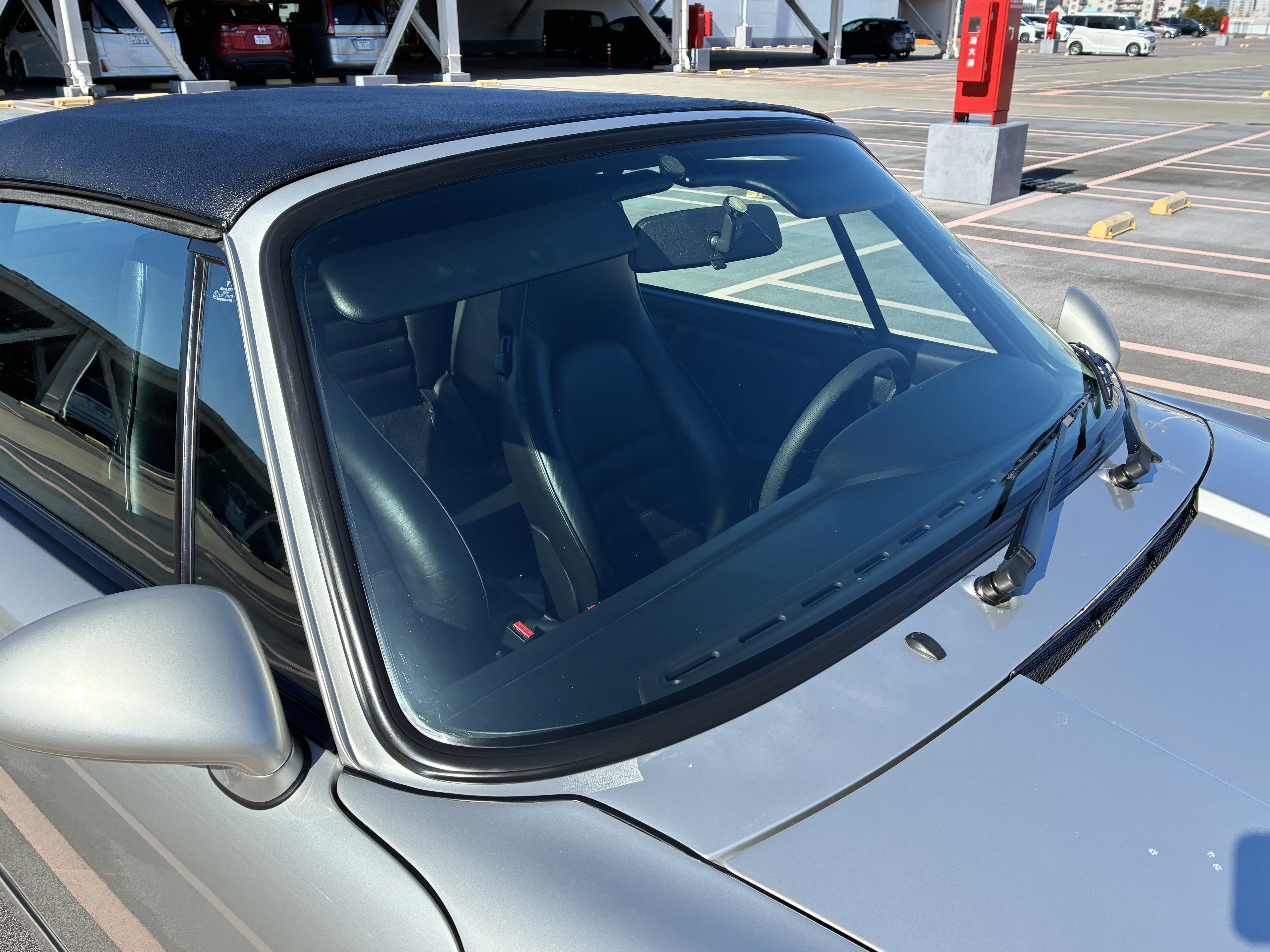 クルマの性質上でしょうか、フロントウィンドウに飛び石キズが散見されます。