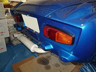 仕上げ途中のため、エンブレムやドアのウェザストリップ、前後のバンパーなど、未装着パーツがありました。