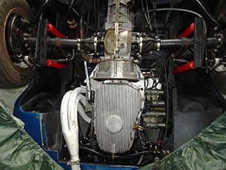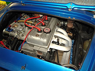 1600ccのエンジン、ウェーバーのツインキャブ(45Φ)、タコ足とエキゾーストマフラーは耐熱塗装を施しています。
