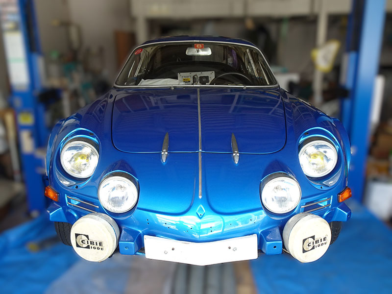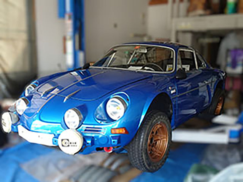 現オーナーさんはレース経験があり、ある程度の整備ができる方、取材にお伺いしたときにびっくり、なんと2柱リフトがあり、アルピーヌがリフトに載っていました。