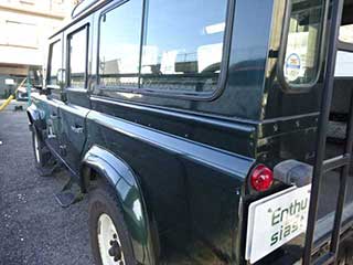 | 1999年式のディフェンダー110 TD5です。 オーナーさんは専門店より2015年に購入しました。その時点で国内未登録だったため、新規3年登録をしました。 購入時の走行距離は約10万キロでした。現在までに37000qの使用になります。主にレジャーでの使用です。オーナーさんに限ってはオフロード走行はされていません。 外装はオリジナルのエプソングリーンメタリックです。 ボンネットの塗装があせていますが、オーナーさん購入時にはすでに、はじまっていたそうです。 ヘッドライト周りの飛び石や、バンパーの錆などありますが、ディフェンダーならではのダメージ具合だと思います。 ホイルも純正のホワイトホイルですが、あえて錆が出ているものに交換されたそうで、この使用感こそオーナーさんのこだわりです。 タイヤは購入時に交換しています。 ドアの蝶番やサイドステップ、見えるように打たれたリベットなどエンスーならワクワクするような外観です。 ステアリングはナルディに変更していますが、純正もあります。 シフトノブもアルミの削り出しに変更していますが、純正ノブがあります。 フロントシート2脚は、布の痛みが酷かったので、ビニールレザーに張り替えました。 空調はクーラー(エアコンではありません)とヒーターです。 ETCが付いています。 中列シートは折り畳むことが出来ます。 最後部シートは横向きについています。 この後部シートに6組のシートベルトが装備されているそうですが、車検証の定員は9人になっています。 フロアゴムマット、フロントタイヤのマッドガードもありますので、お付けいたします。 エンジンや機関は良好です。 直近の整備として、2020年2月に車検整備を行っています。 ■2020年2月(136480q) 今回、ショックとスプリングも交換しています。 現在、使用に不具合はありません。 個人の為、消費税はかかりませんが、リサイクル料(10300円)と月割りの自動車税のご負担をお願いします。 車は東京23区内にあります。 |