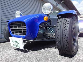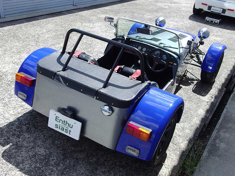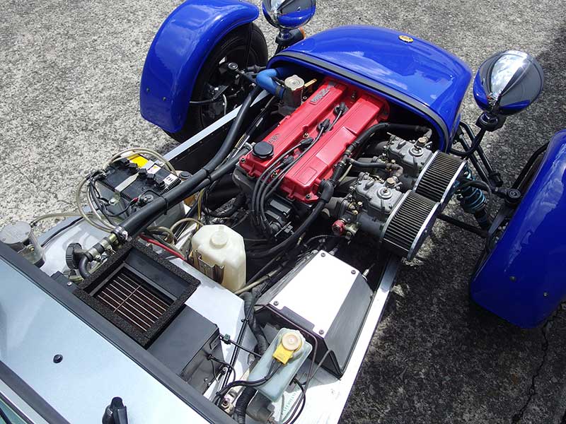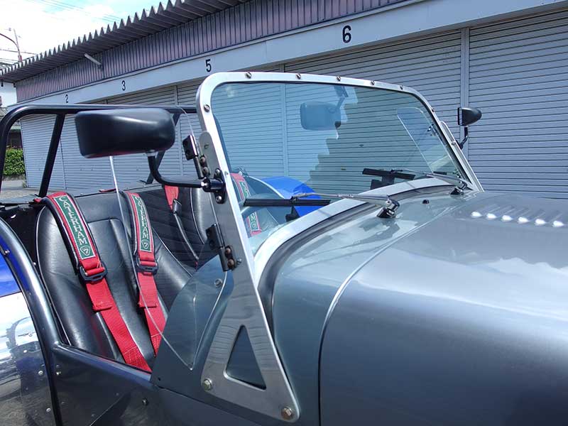 低走行のよく整備の行き届いたセブン。外装、内装は年式より綺麗な印象です。650kgの車重に2リッターの良く回るエンジンを積んだゴーカートのような車。これで公道を走ることができるのですから、ある意味エンスージアストの行き着くひとつの道です。