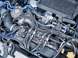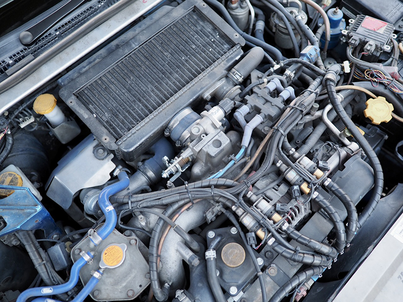 EJ20水平対向ターボエンジン搭載のエンジンルーム全景 |