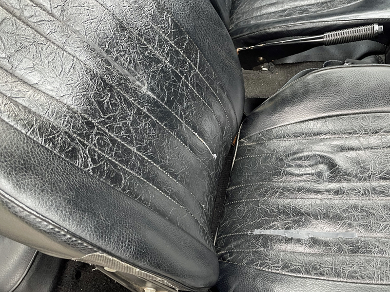 運転席の背もたれ・座面に破れの補修痕を確認しました。