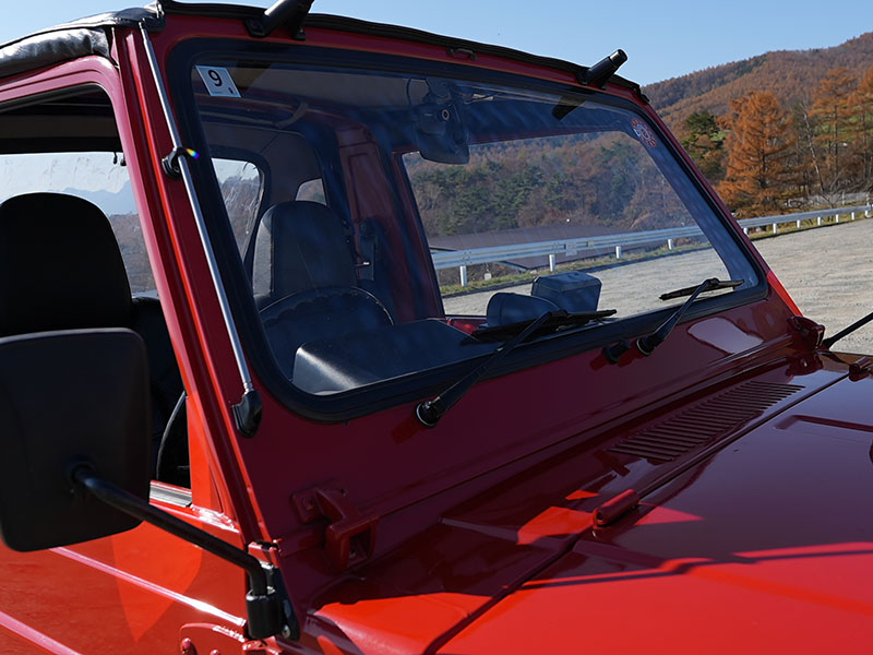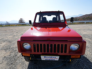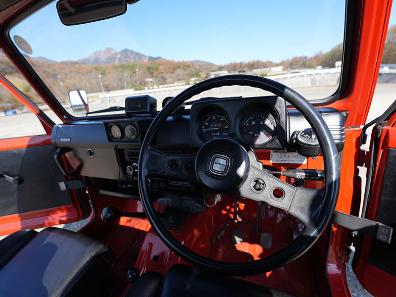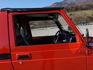 従来の4輪駆動車は、営林署、建設会社、電力会社など、悪路を走って現場に向かうことが必要な職業を支える道具、いわば実用車でしたが、1980年代になってアメリカ文化の影響もあり、その高い走破性を活かして都会の喧騒から離れ、非日常の世界で休日をリラックスして過ごす、新しいライフスタイルを支える道具として活用されるようになりました。三菱パジェロとともに日本のRV時代の幕開けを象徴するモデルが、このスズキ ジムニー SJ30です。また、このモデルは2ストロークエンジン搭載の最後の量産軽自動車であったことも非常に興味深いです。時代を象徴するこのモデルを大切に動態にて保存して参りました。排気音、2ストローク車の匂い、振動、そして特筆すべき走破性、すべてが当時そのままです。外観・内