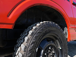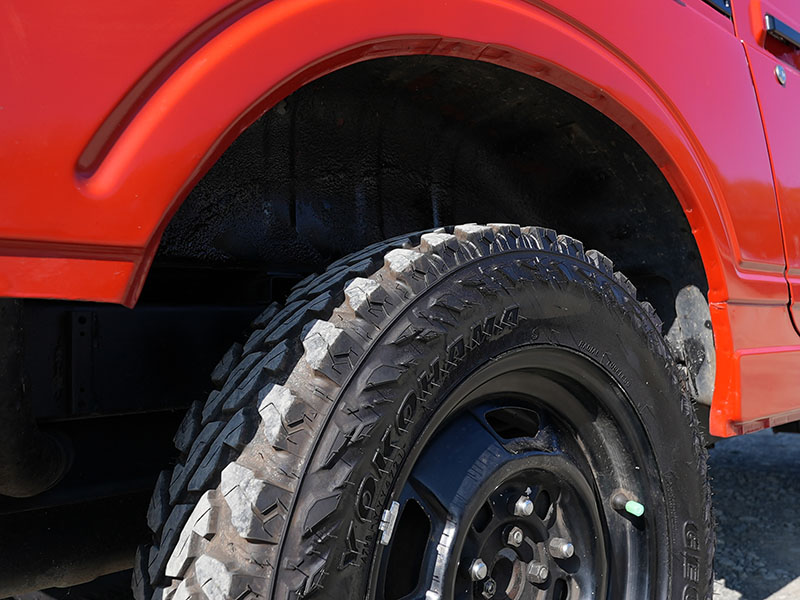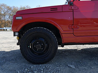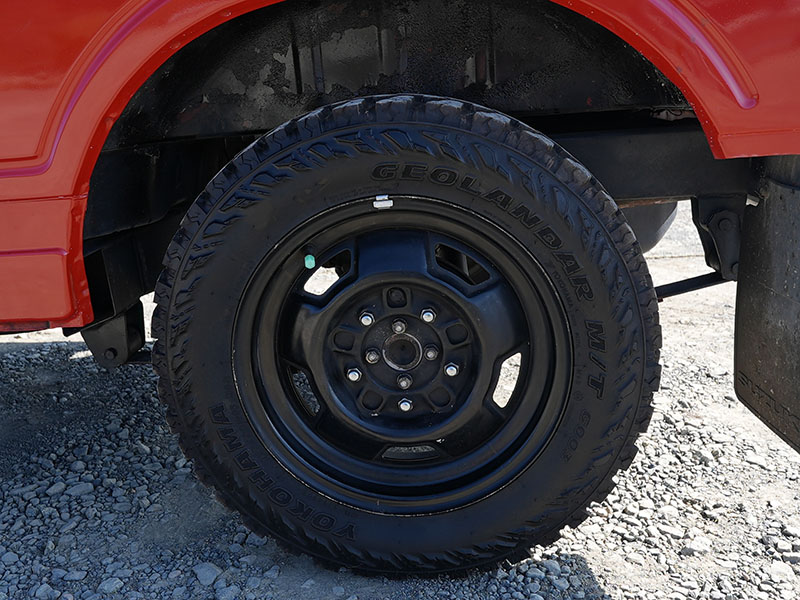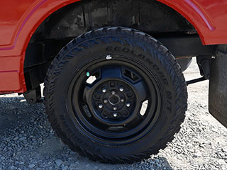 ホイール:純正鉄ホイール。黒色塗装し、足元を引き締めています。手動フリーホイールハブ付。