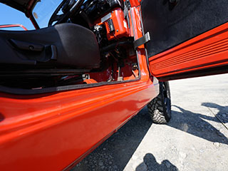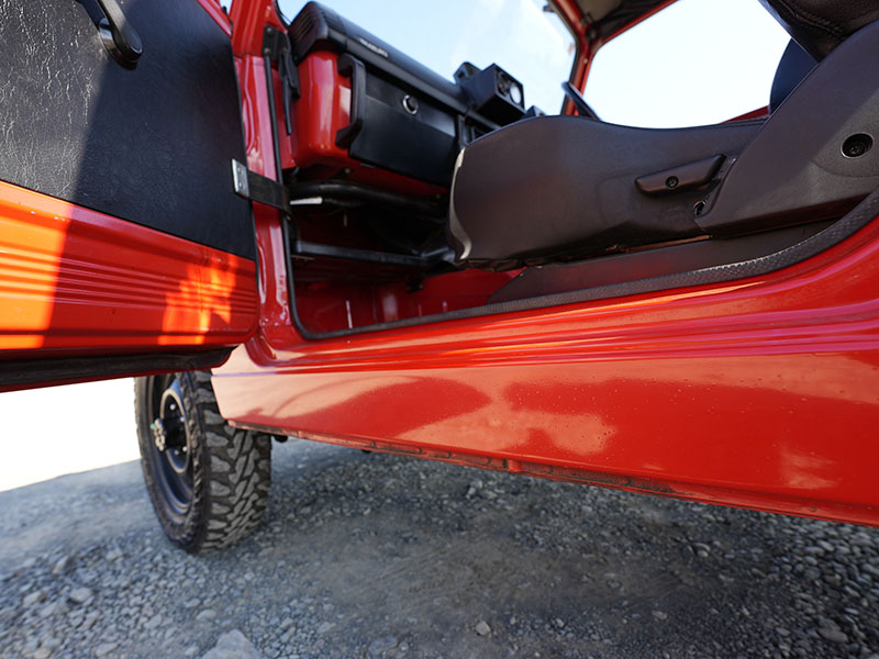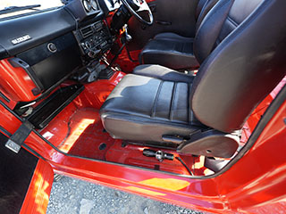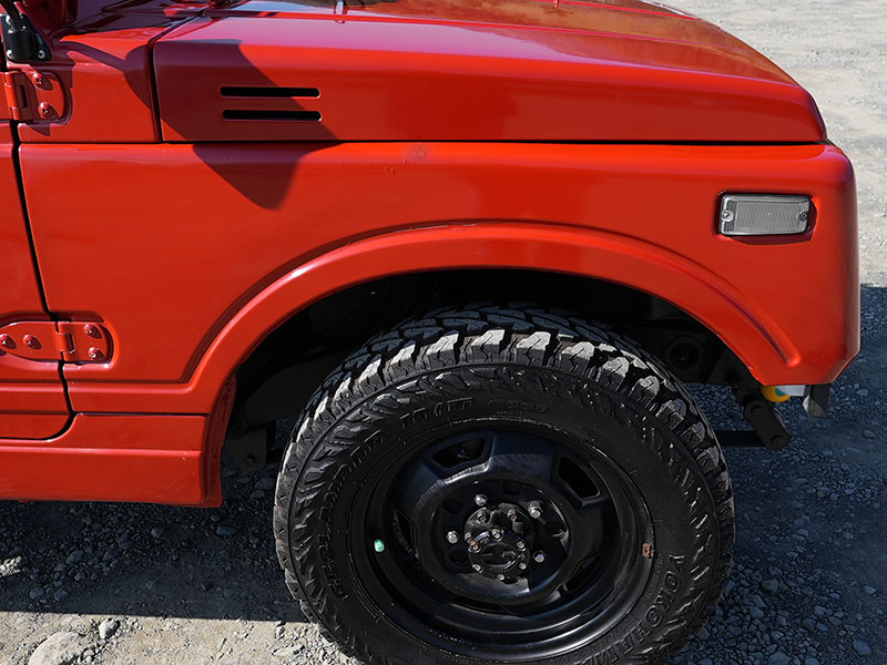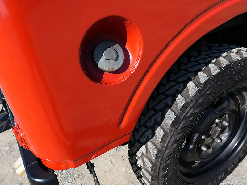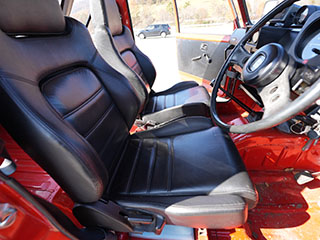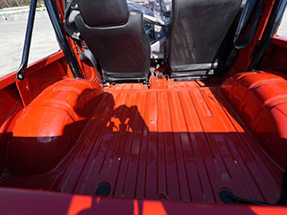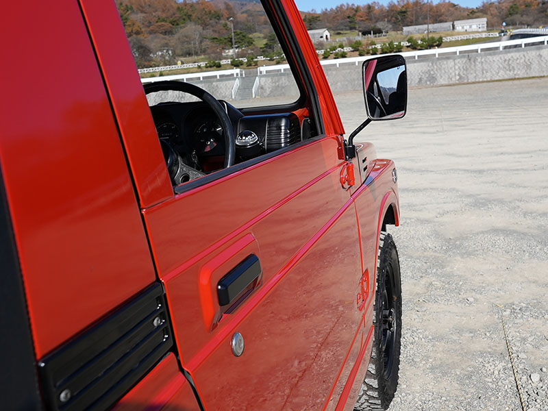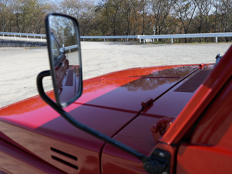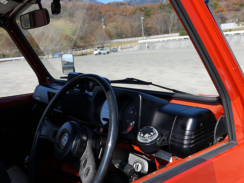 メーターパネルや鉄板ボディー剥き出しの赤の塗装は細かな箇所まで丁寧にリペイントされており、ダッシュボード、ドアパネルなど破れキズなどもなく綺麗な状態を保っています。トランク内も塗装されており、目立った錆や汚れなどはありません。