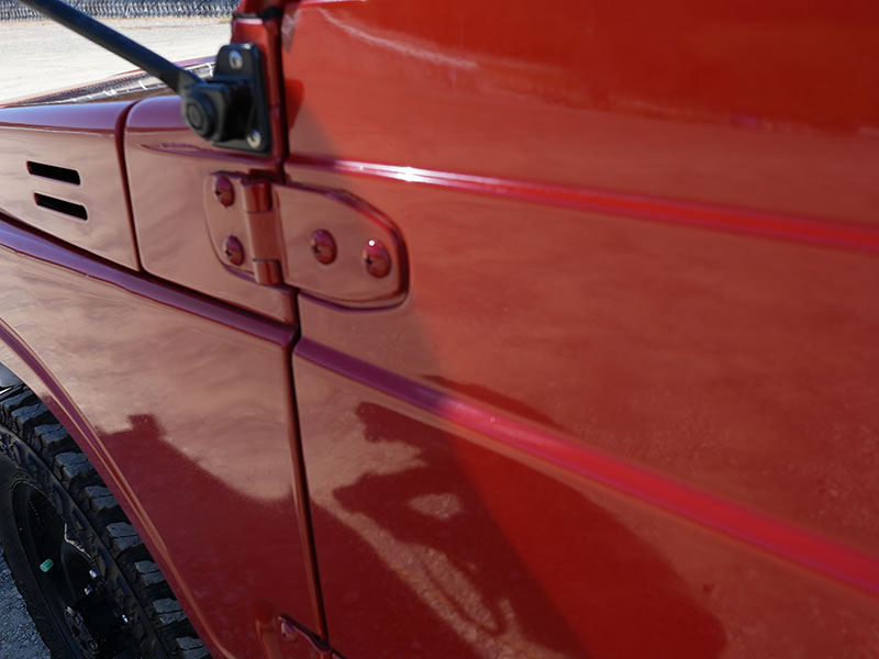 この車の使途に多く見られる、クロスカントリービークルの悪路走行は、しておらず、ボディー下部の痛みは見られず、ドンガラにして再塗装を施しているため、経年劣化はありますが、コンデションの良い状態に保たれております。