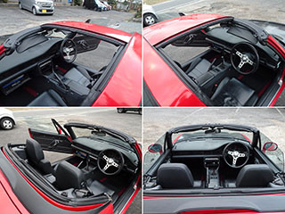 特に特長的なのはルーフ、3ピ−ス構成で取り外しができ、トランクに収納できるため、フルオープン、タルガトップ、Tトップの3つの形態を楽しめました。