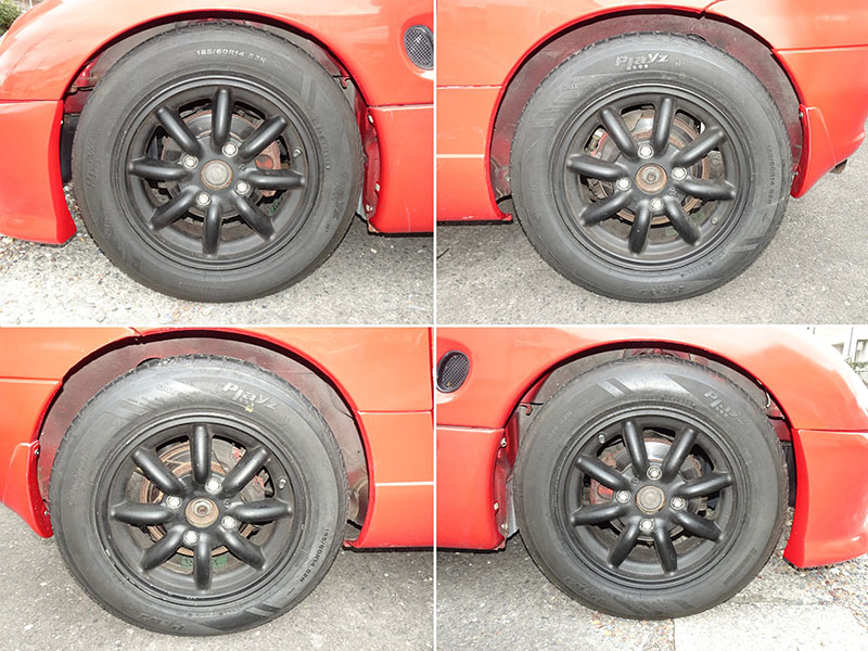 アルミホイールは、ワタナベのアルミホイール、タイヤサイズは185/60R14です。