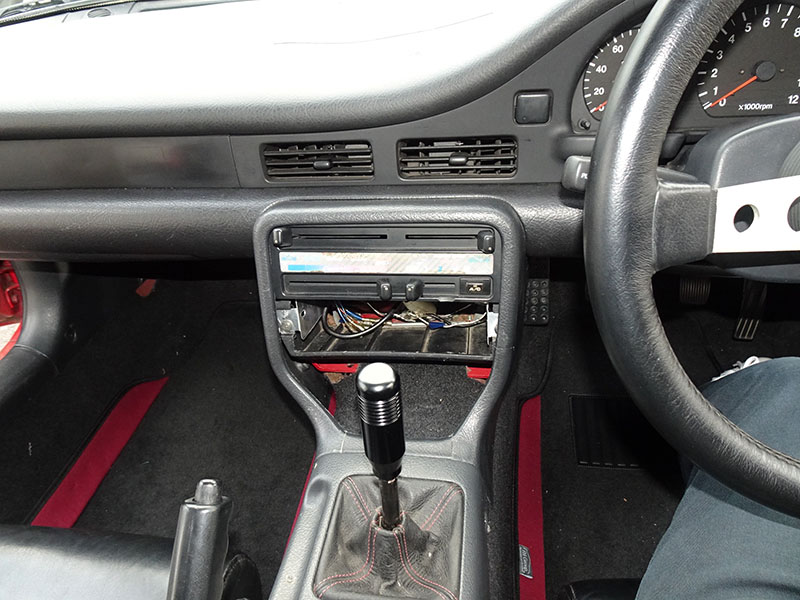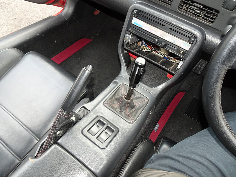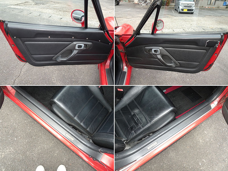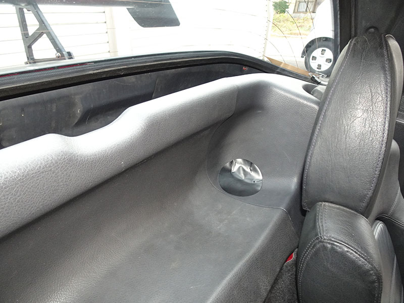 ドアの内張りは、運転席側に破れがありテープで補修、助手席側はアッパートリムが外れてきたため、ボルトで留めています。