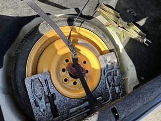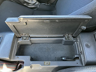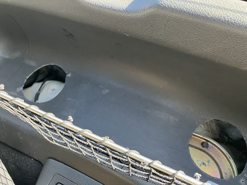 シート後ろのバックトリムにリアスピーカーを取付けていたと思われる穴が2カ所空いています。