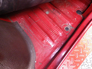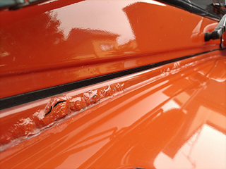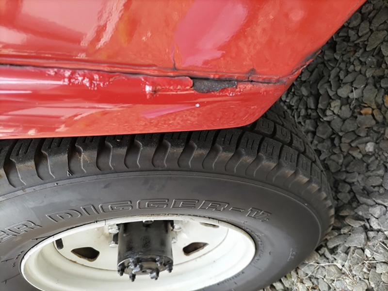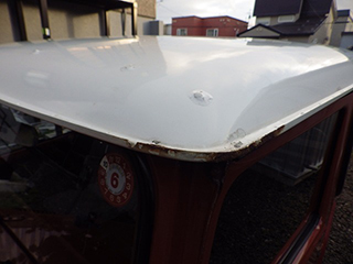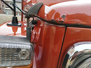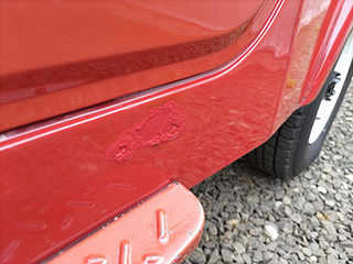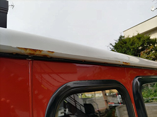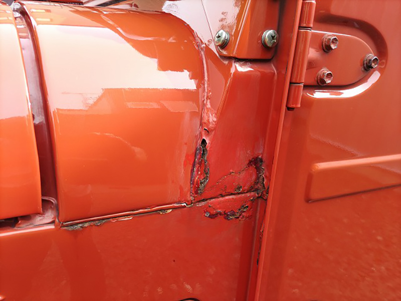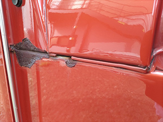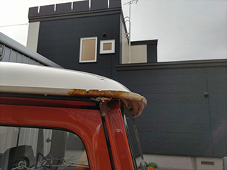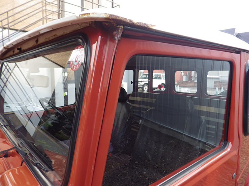 ボディのルーフの雨どい部分、左右のフロントフェンダー、フロントウィンドウ下、左フロントドア、右リヤホイールハウスなどに錆、腐食があります。