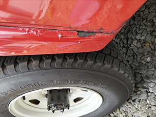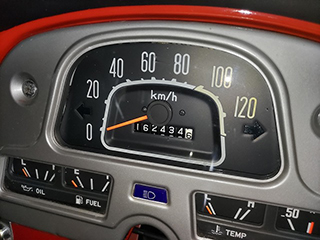 ボディカラーは元色レッドですが、前オーナー以前の段階でやれてきた元色の赤に合わせて調色して全塗装されていますので、少し朱色がかっています。