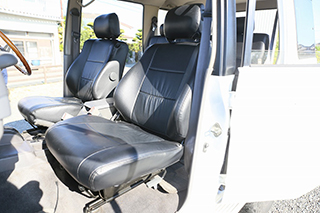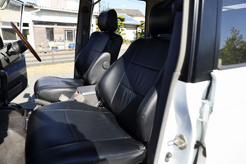 黒の人工皮革のシートカバーが装着されていますが、運転席座面に大きな破れがありました。また、助手席側のダッシュボードに2箇所、2cm、4cm程度の亀裂がありました。気が付いた欠点はそれくらいです。いずれも画像にてご確認下さい。