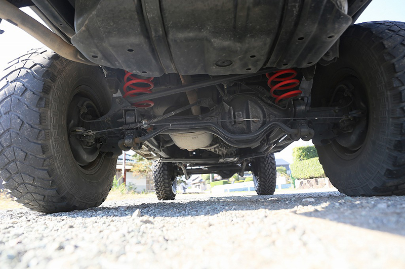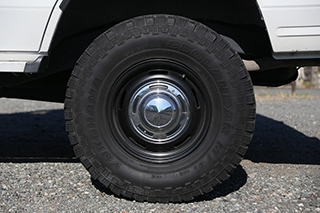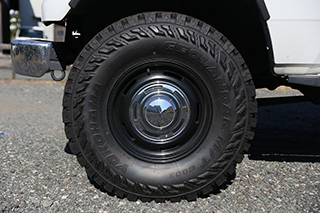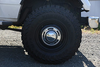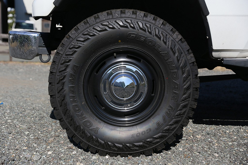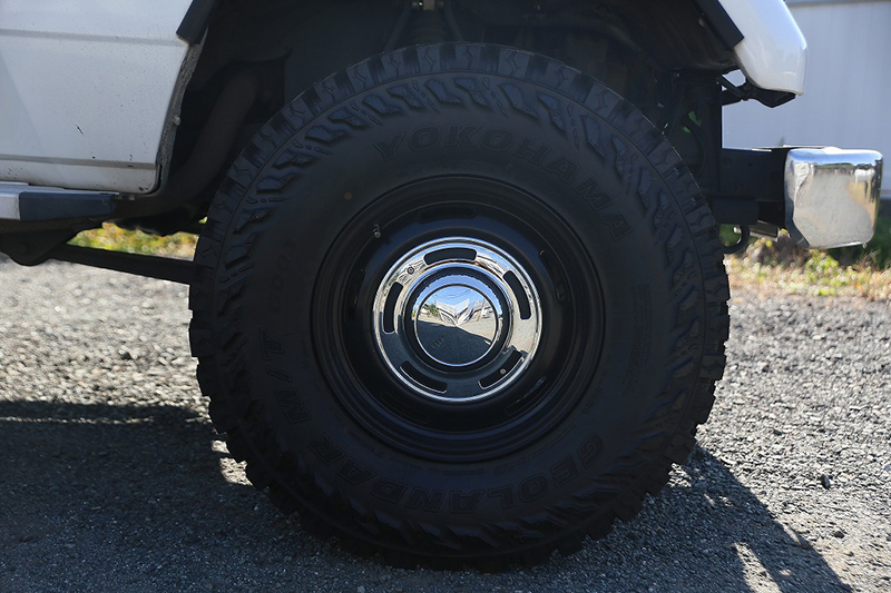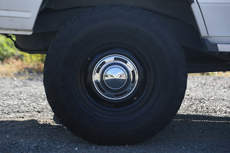 タイヤはヨコハマ ジオランダーMT 255/85R16。前輪は新品同様、後輪は5部山程度です。