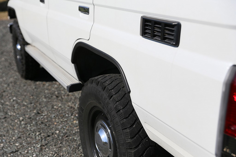 今回ご紹介する「ナナハチ」と呼ばれる78プラドは、ワイドフェンダーをカットしナロー仕様にしたモデルで、全幅は169cmと取り回し易い5ナンバーサイズとなり、5人乗りのバンとなっています。エンジンは高出力130psを発揮する水冷直列4気筒OHCターボディーゼル、ミッションは4速ATを搭載しています。