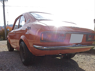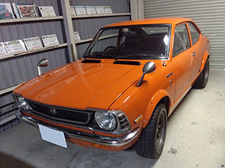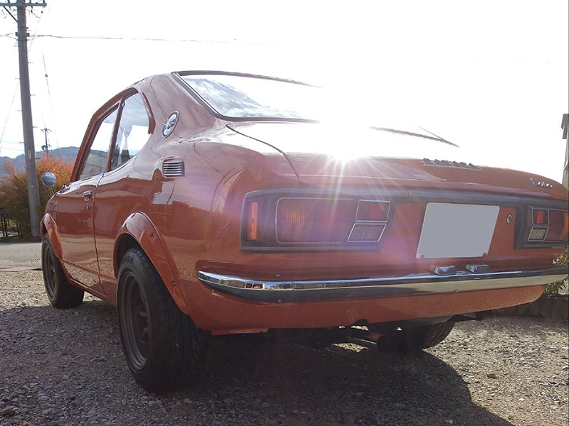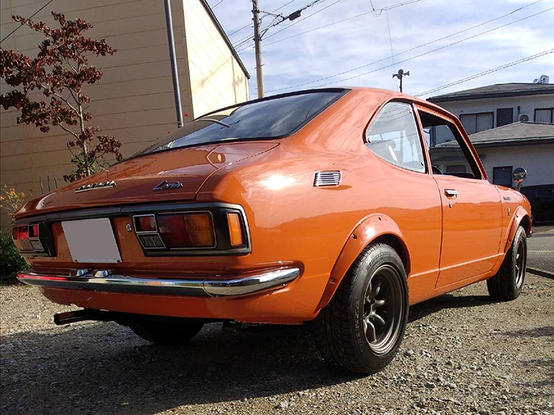 1972年3月、カローラレビンはカローラクーペの「SR」をベースに、よりスポーティな「ホットモデル」として登場しました。ボディの特長はなんと言っても樹脂製オーバーフェンダー(生産時期によっては金属製の物もありますがこの車両は樹脂製)です。